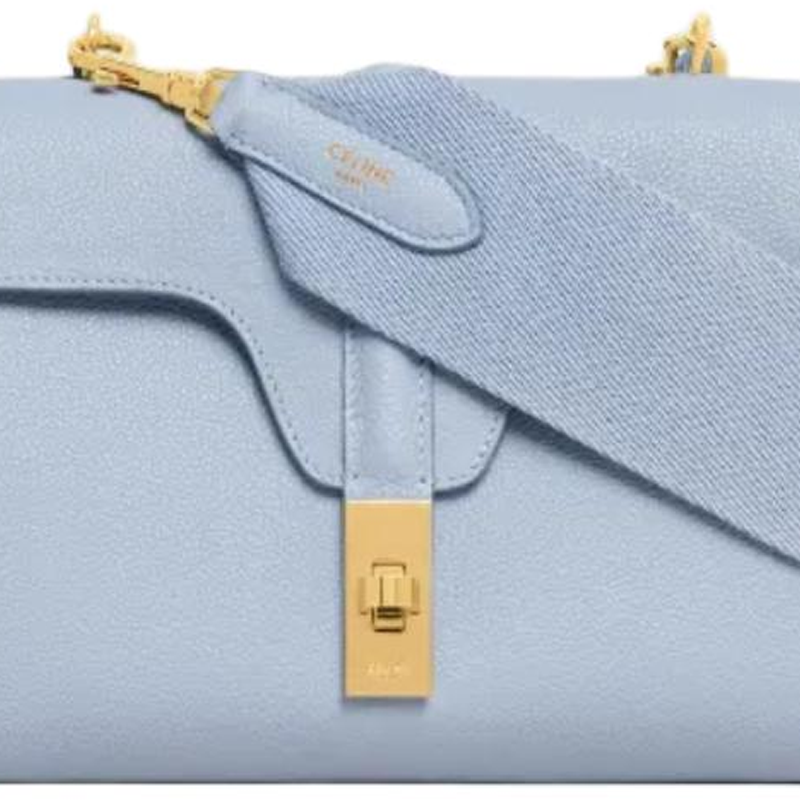 CELINE 16 Grain Calfskin Shoulder Bag, Crossbody Bag Women's Candy/Light Blue