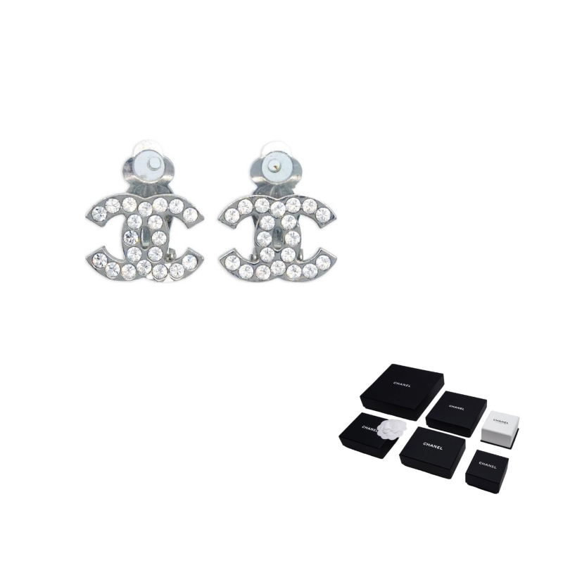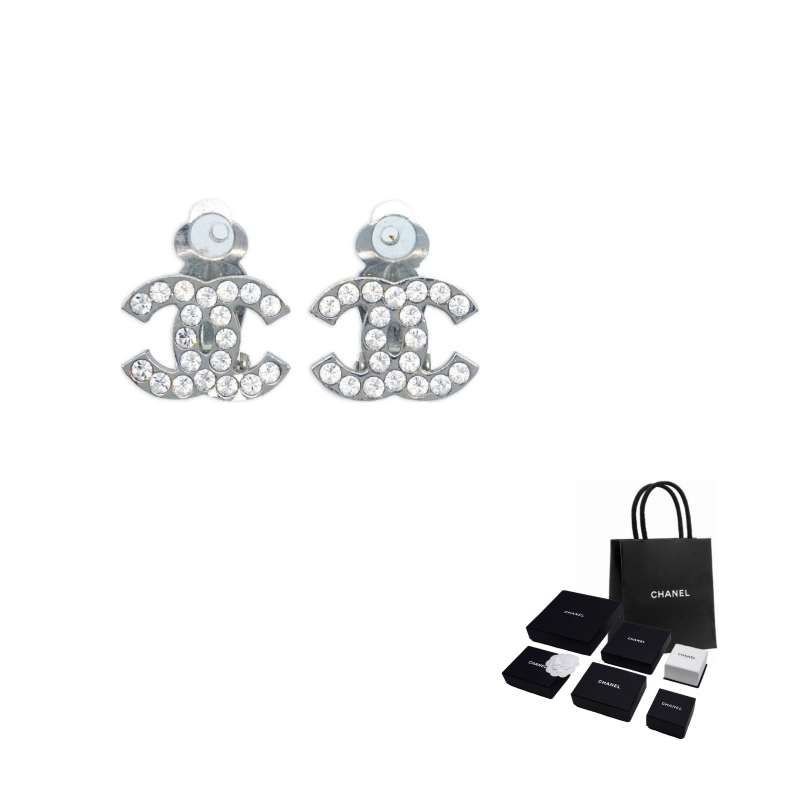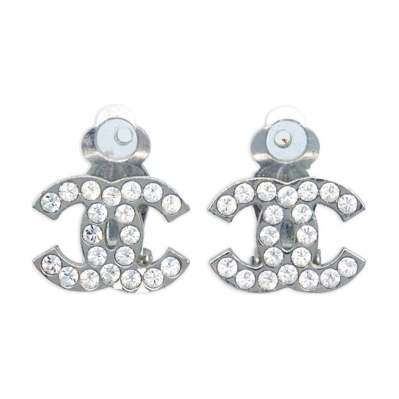 CHANEL 2006 Cc Rhinestone Clip on Earrings