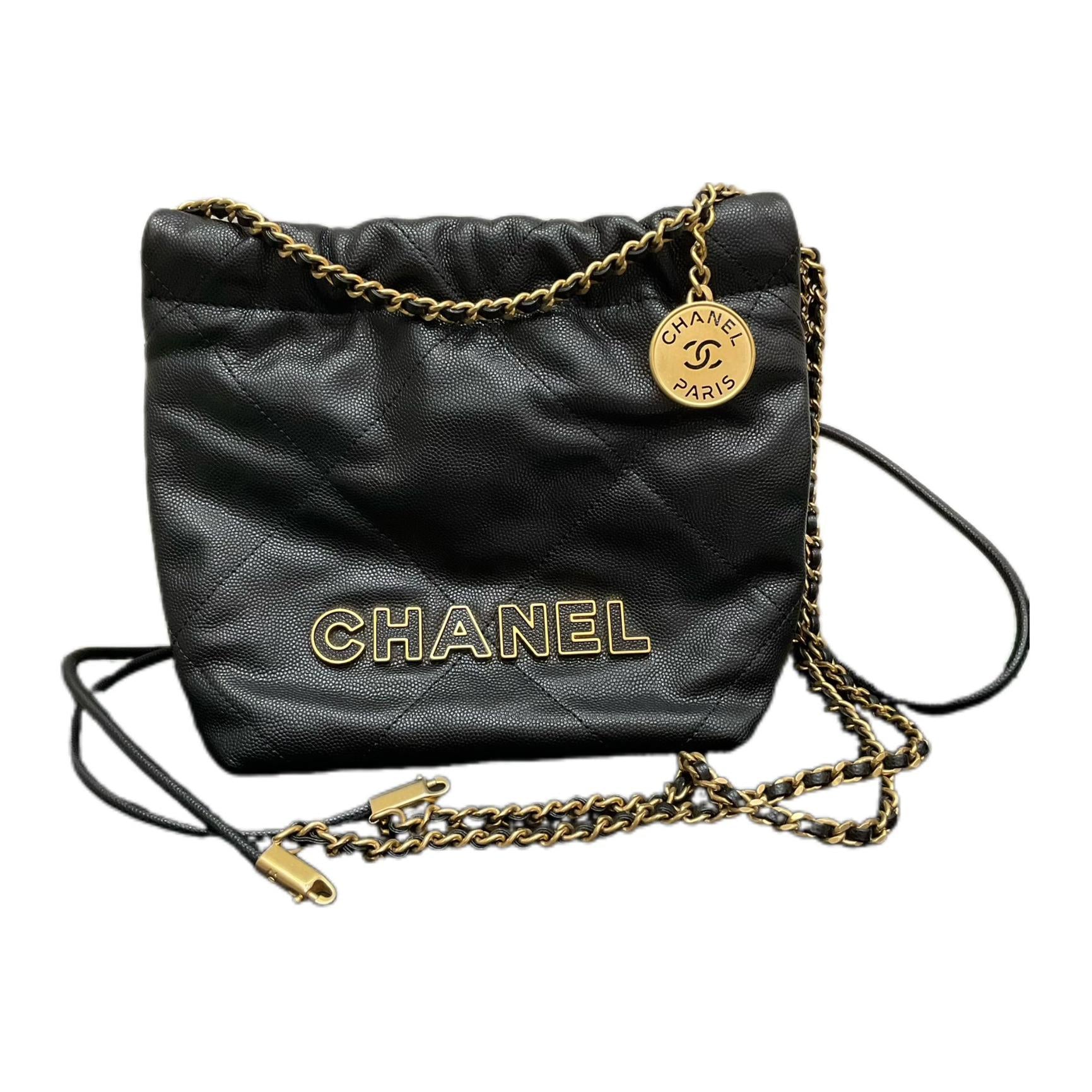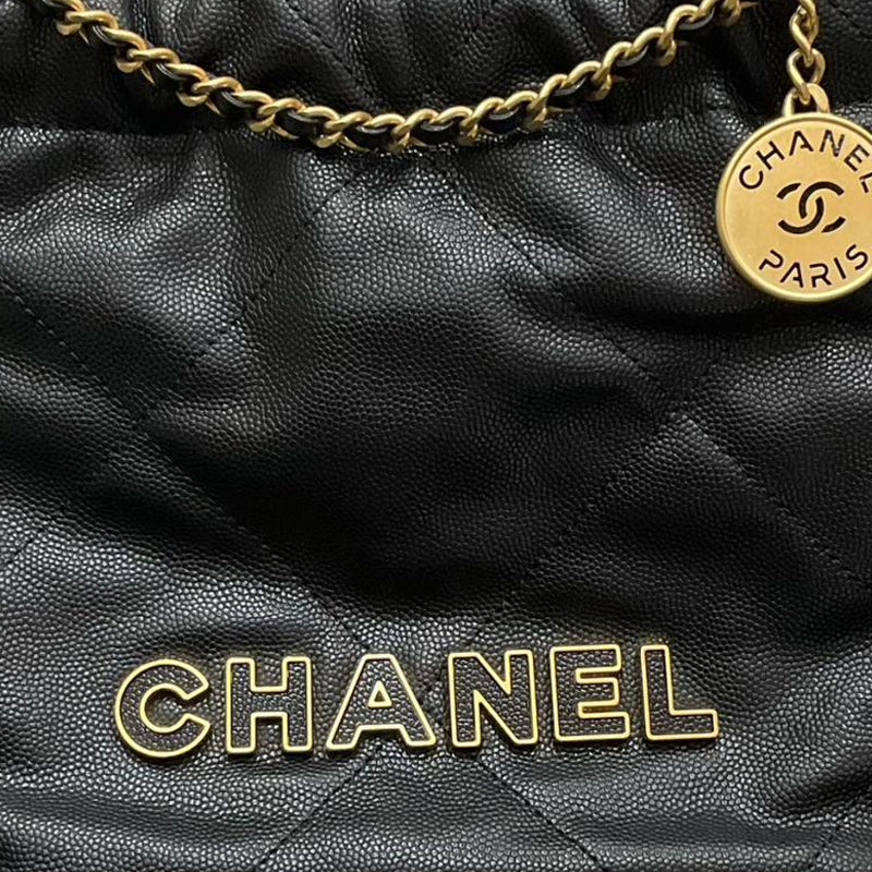 CHANEL 22Bag Grain Calfskin Trash Bag, Shoulder Bag Mini Women's Black