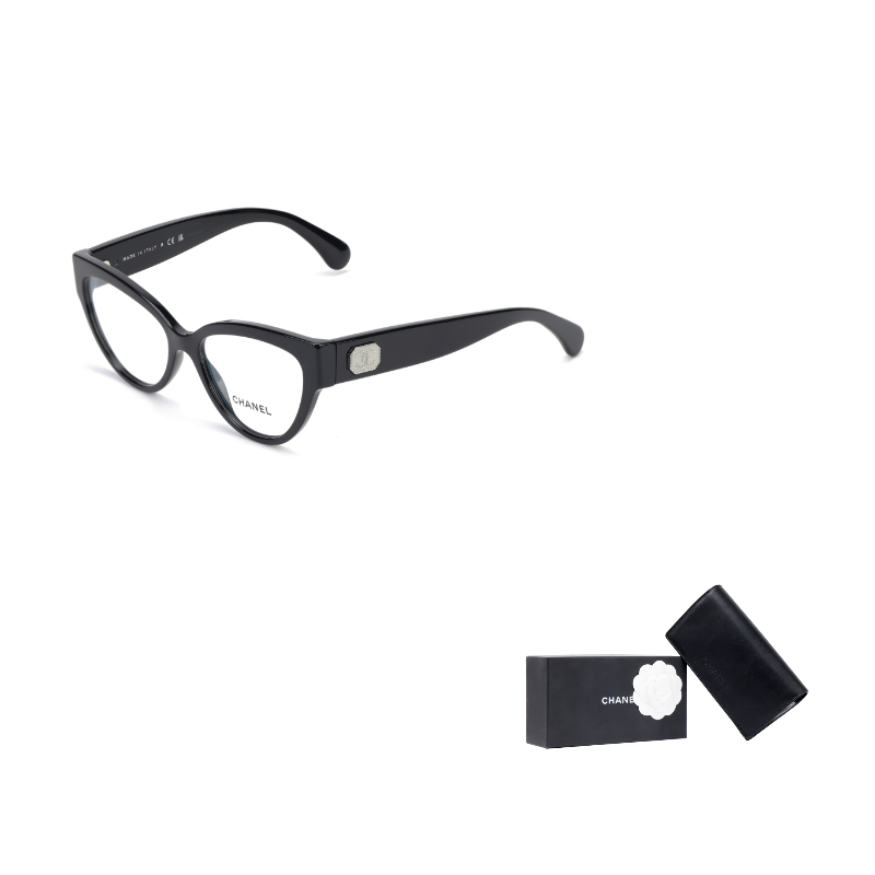 CHANEL Acetate Cat Eye Eyeglass Frames Women's Black
