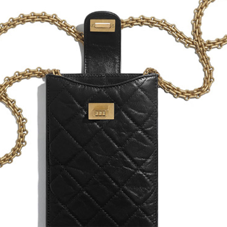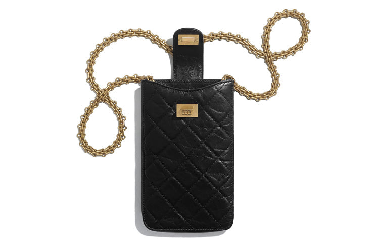 CHANEL Calfskin Cell Phone Pouch Regular Women's Black