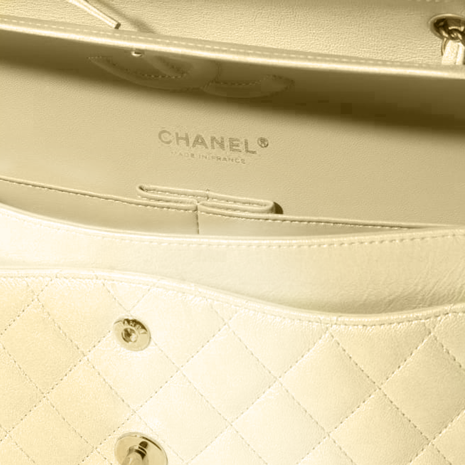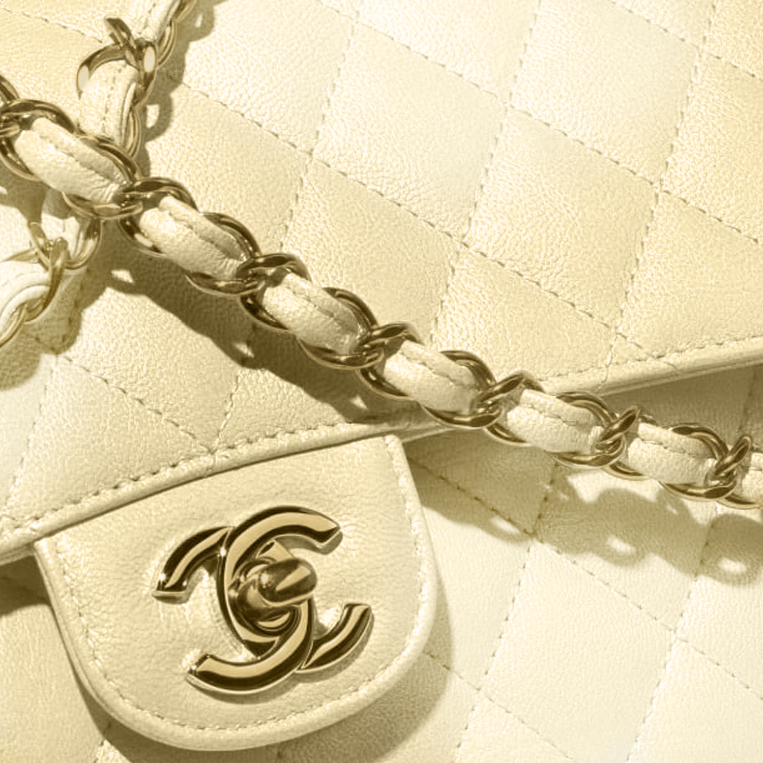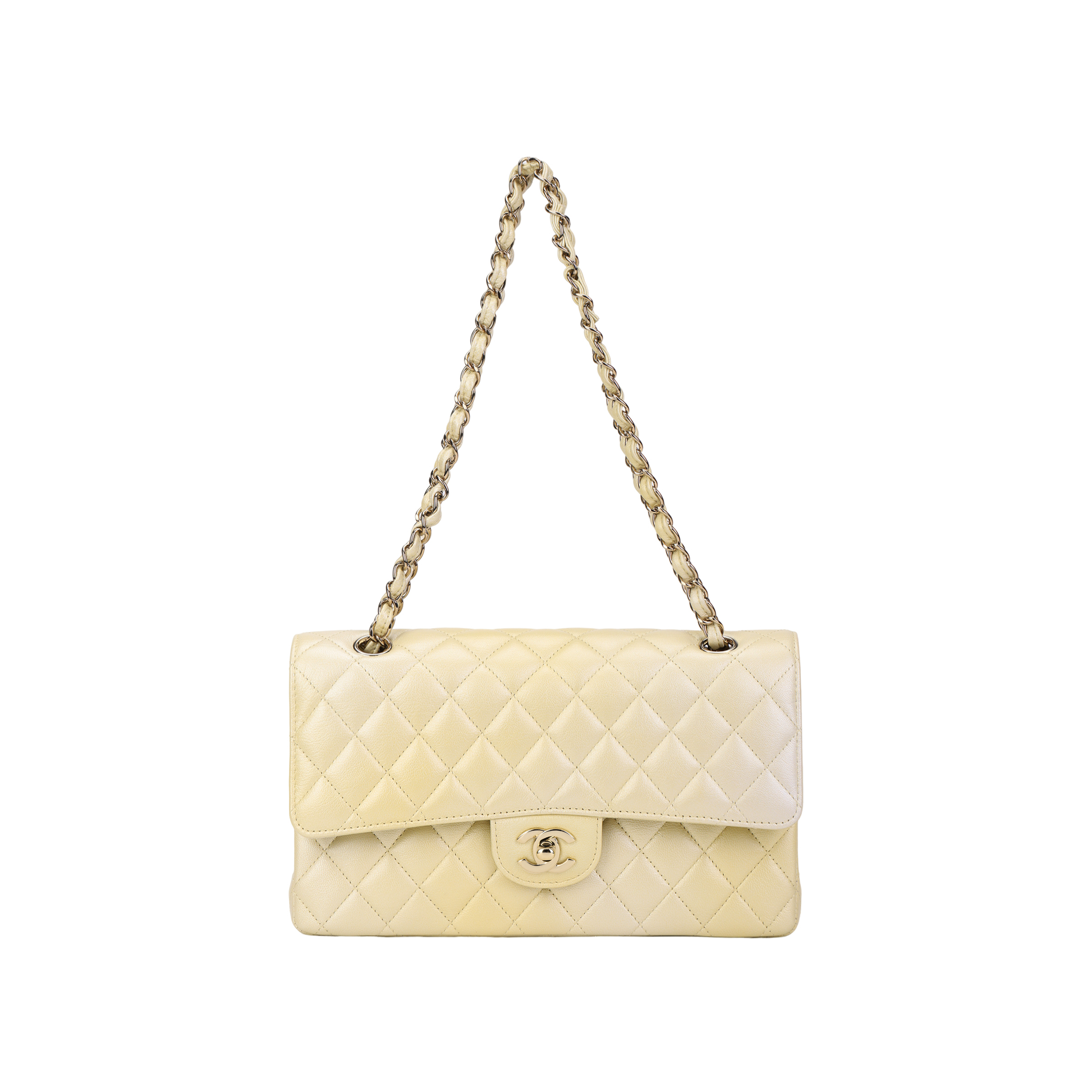 CHANEL Classic Flap CF Cloudy Pearly Goatskin Crossbody Bag, Shoulder Bag Regular Women's Light Yellow
