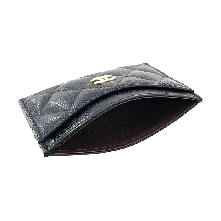 CHANEL Cow Leather Card Holder Women's Black