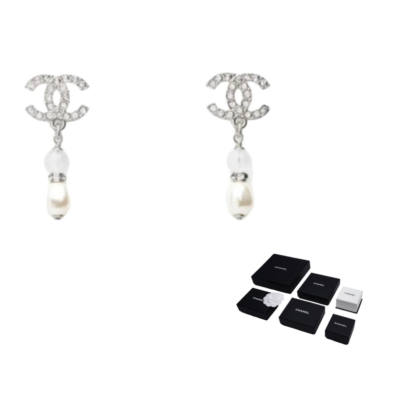 CHANEL Earrings Women's Silver/White CHANEL Earrings Women's Silver/White Silver/White / F / Box+Padding Board Rs. 168,600.00