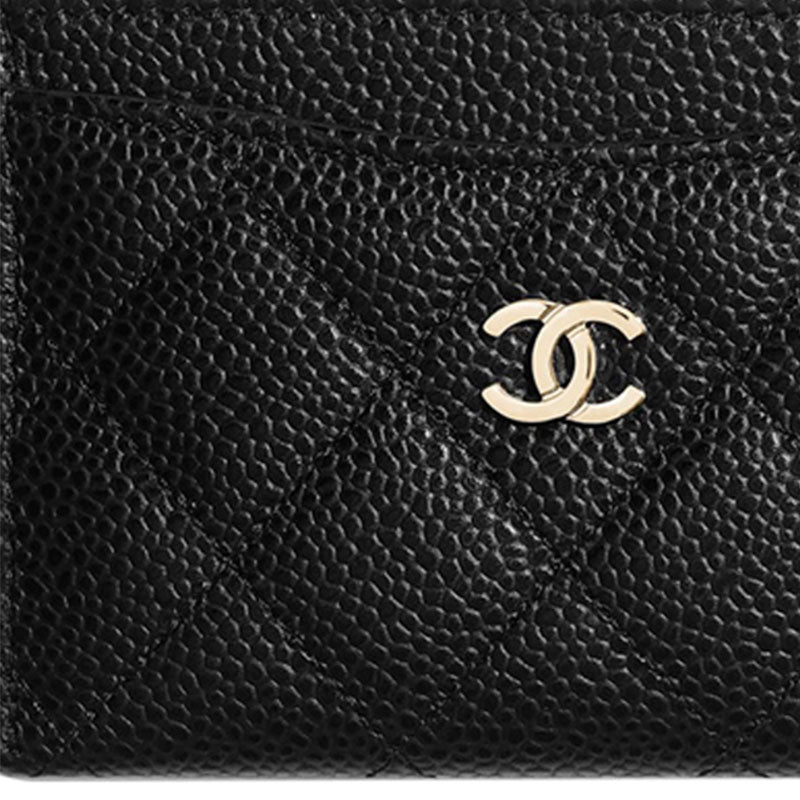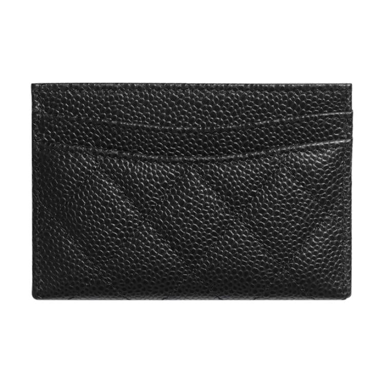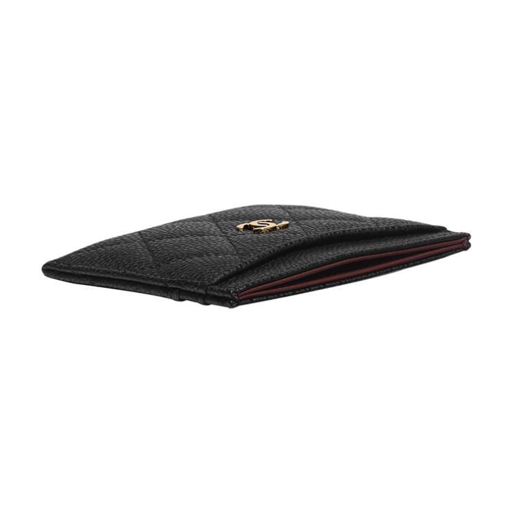 CHANEL Grained Embossed Cow Leather Card Sleeve Card Holder Unisex Black