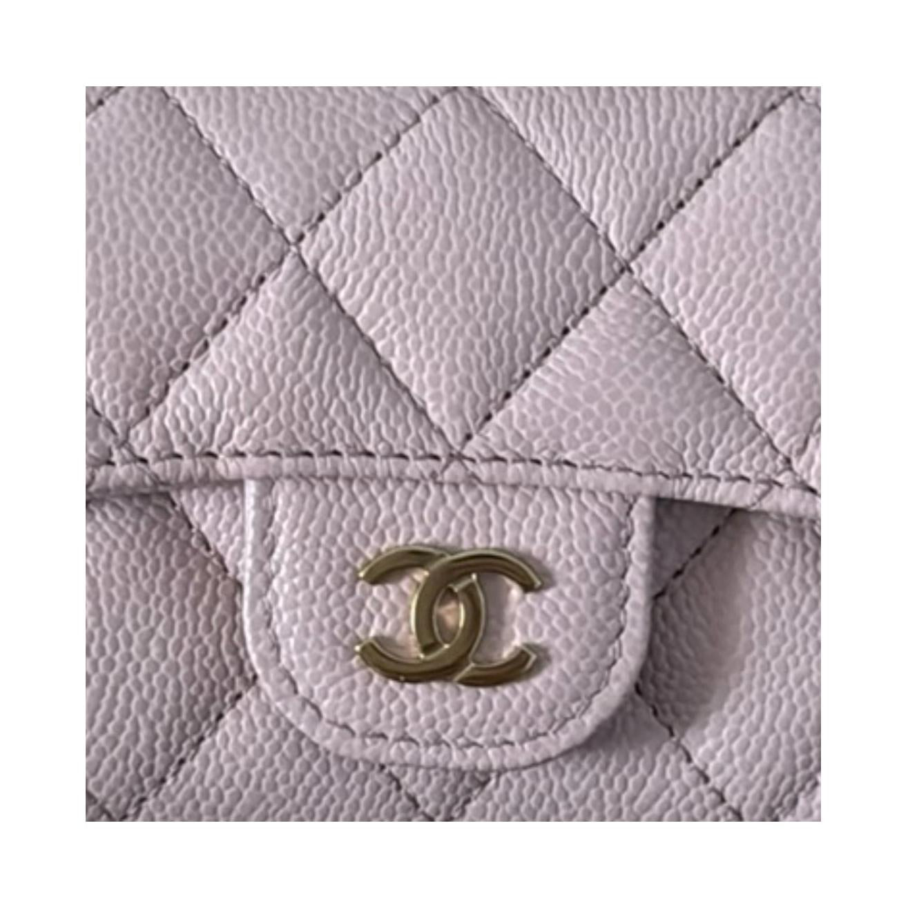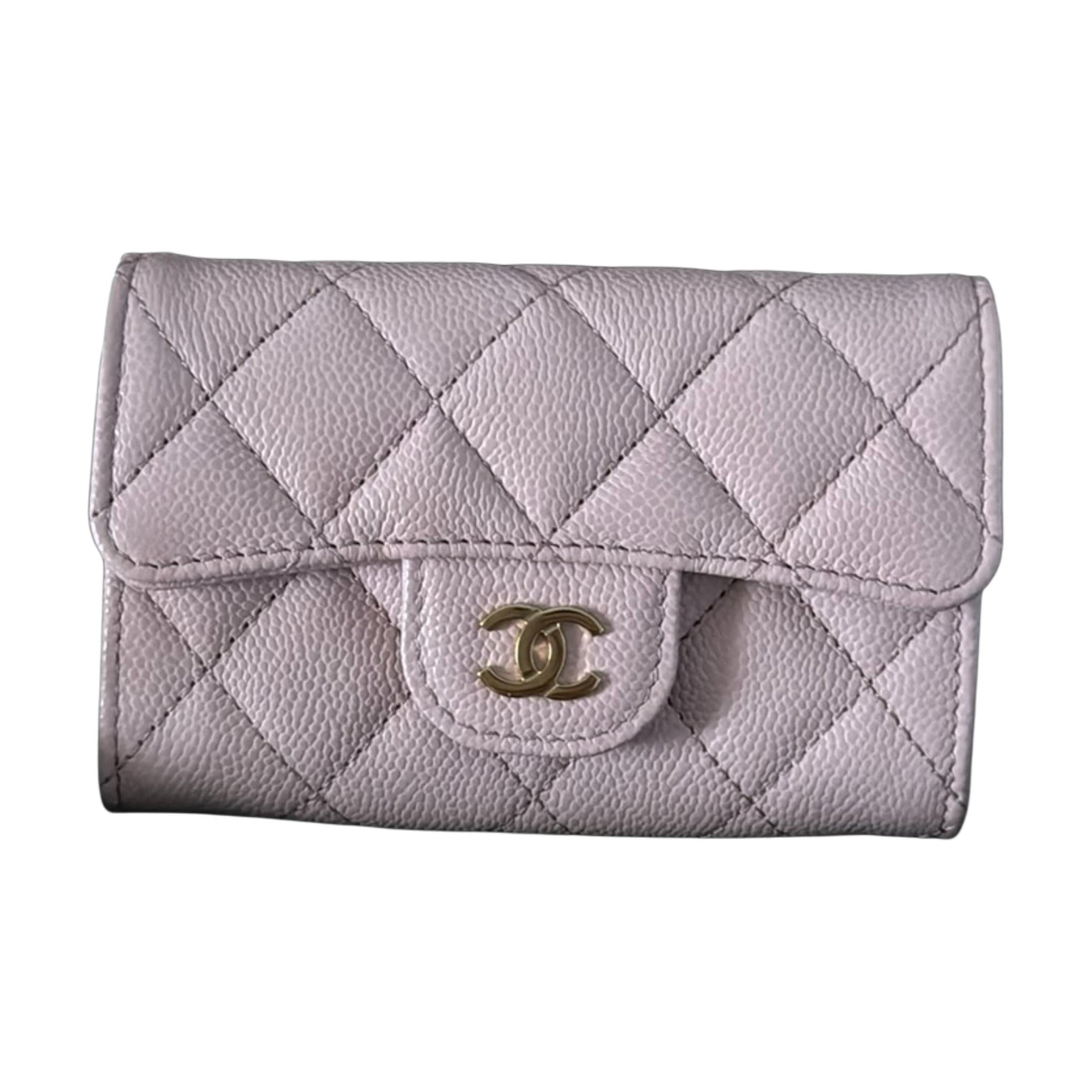 CHANEL Litchi Grain Calfskin Card Holder Women's Light Pink