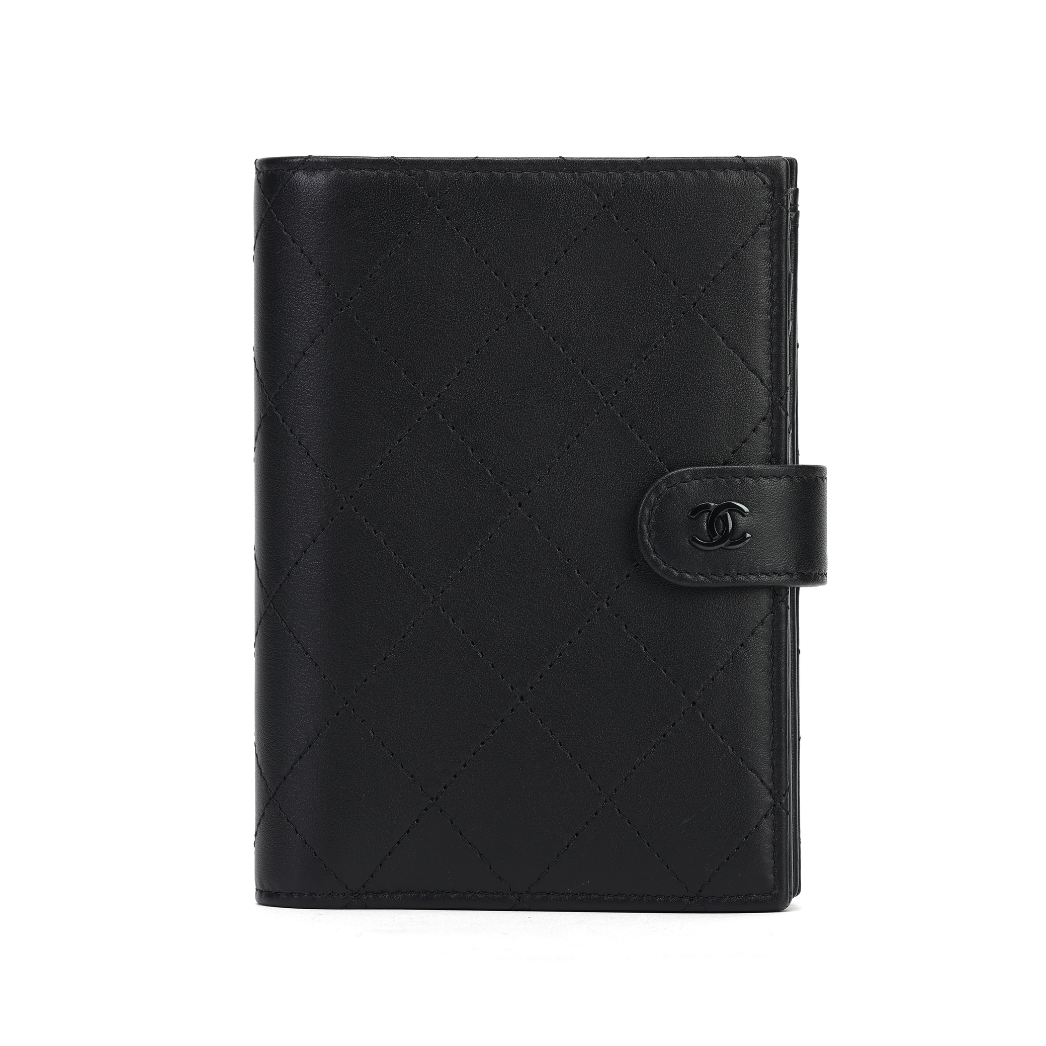 CHANEL Matte Cowhide Passport Holder With Card Slot Women's Black