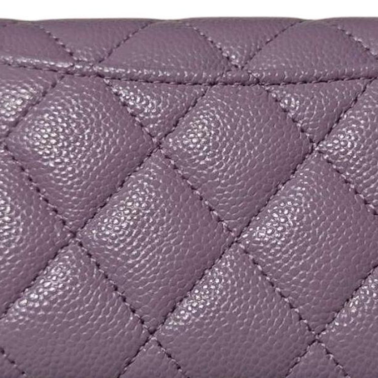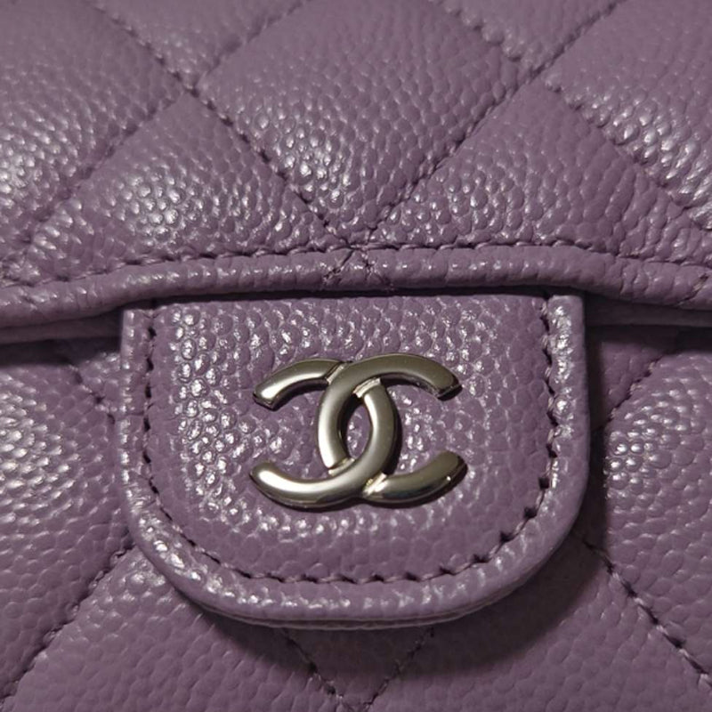 CHANEL Shiny Beaded Embossed Cow Leather Card Sleeve Card Holder Women's StellaLou Purple