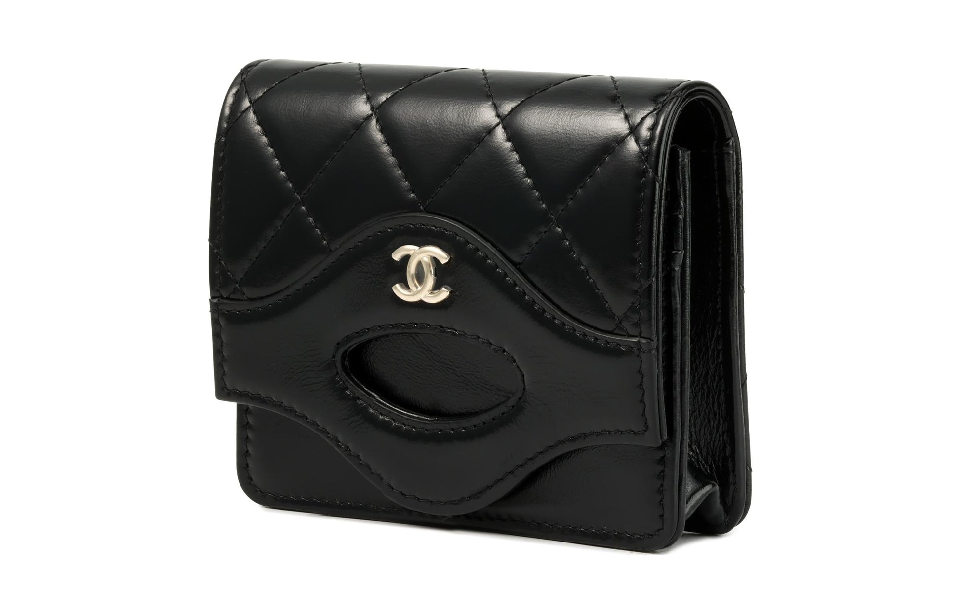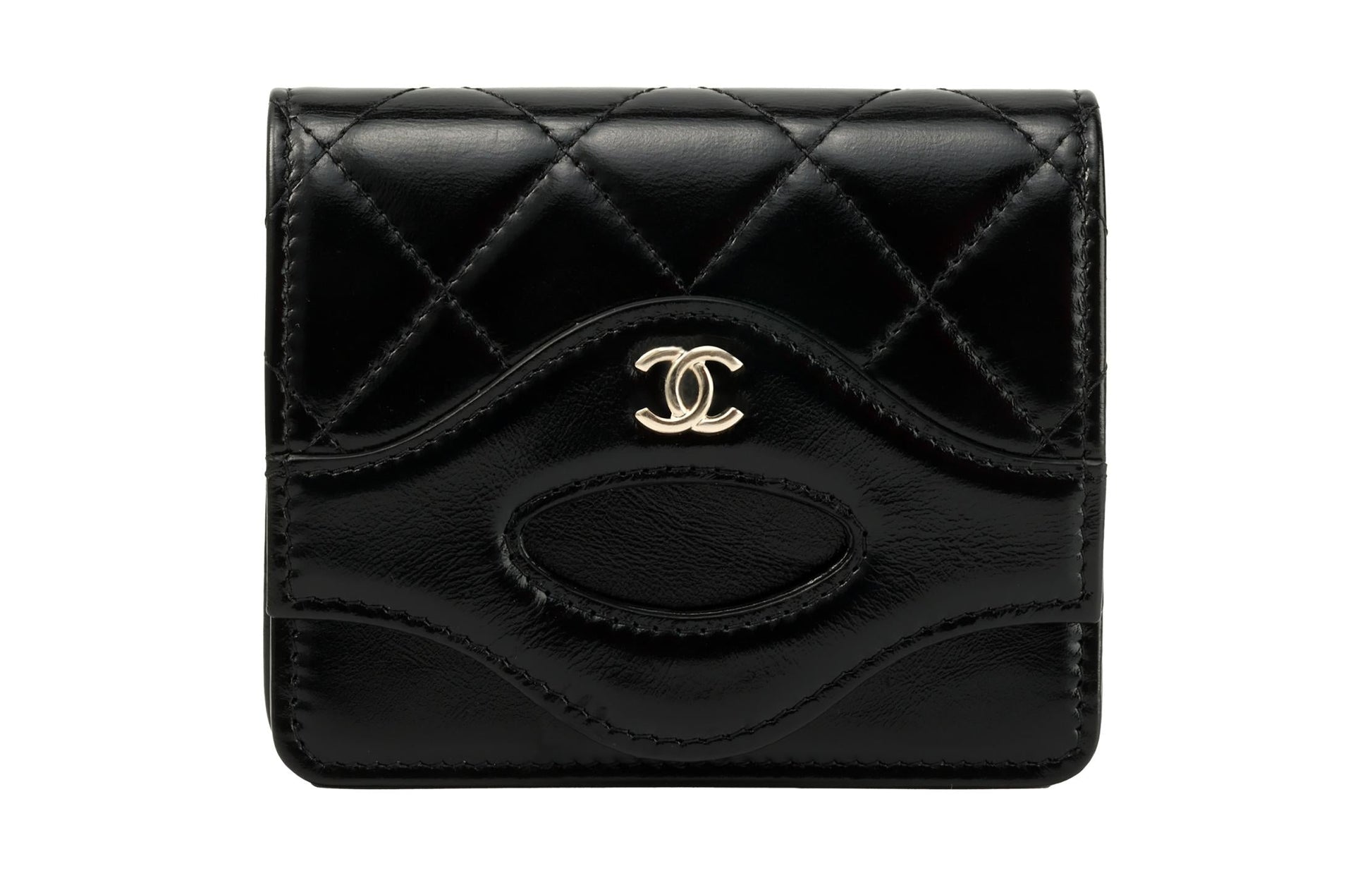 CHANEL Shiny Calfskin Coin Purses Card Holders Women's Black