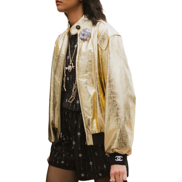 CHANEL SS23 Leather Jacket Women's Gold