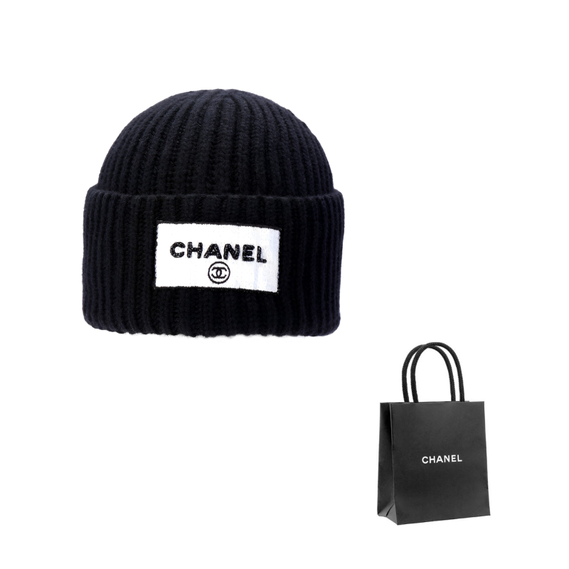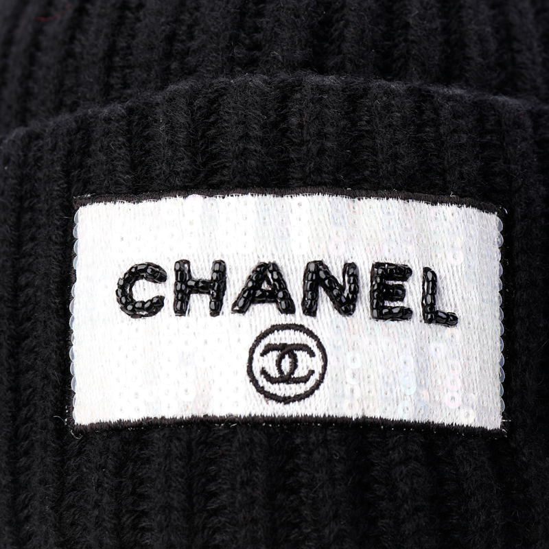CHANEL Wool Beanies Unisex Black