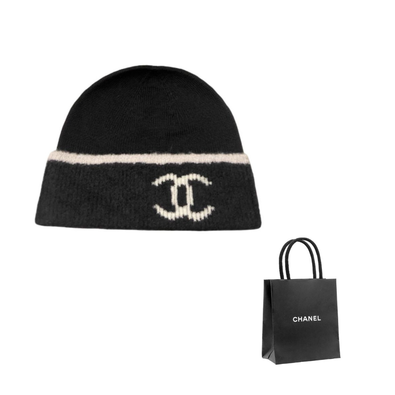 CHANEL Wool Beanies Unisex Black