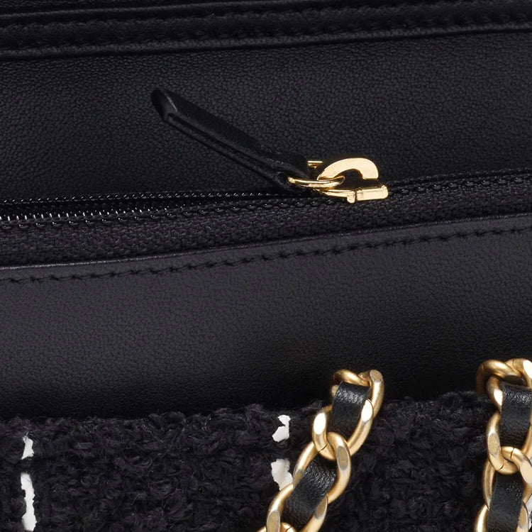 CHANEL Wool Twill Soft Woolen Wallet, Shoulder Bag, Crossbody Bag Women's Black/White