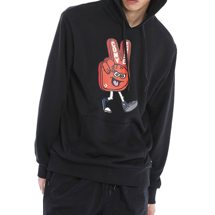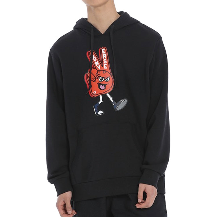 Converse Finger Letter Print Hooded Drawstring Sweatshirt Men's Black 10019083-A01