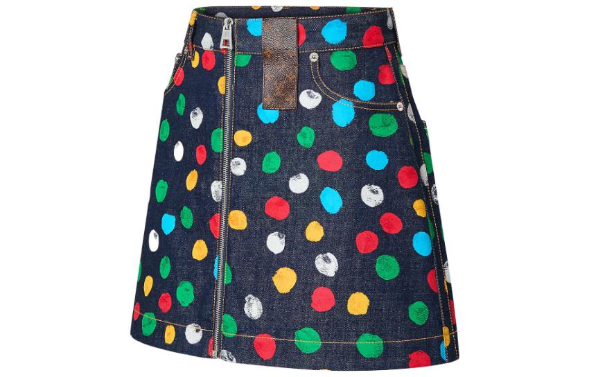 LOUIS VUITTON X Yayoi Kusama Painted Dots Denim Mini Skirt Indigo/Blue LOUIS VUITTON X Yayoi Kusama Painted Dots Denim Mini Skirt Indigo/Blue Black / EU 34 Rs. 153,200.00