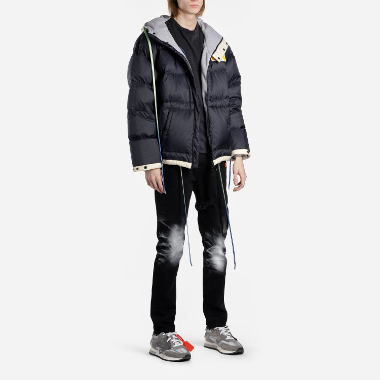 Off-White FW19 Scaffolding Zipped Puffer Arrow Jacket Men Blue OMED019F19E150253201