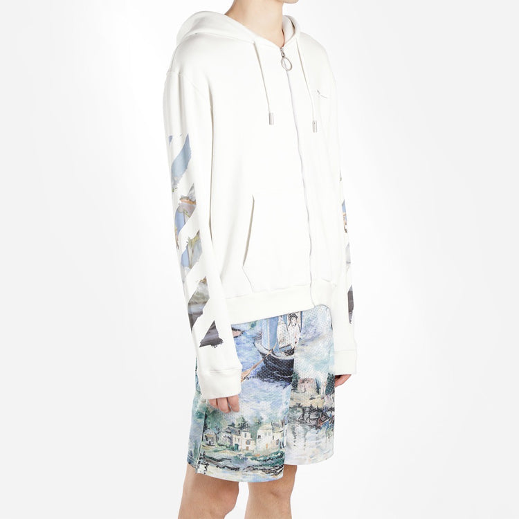 Off-White Zipped Up Printed Hooded sweater Men White OMBE001G20FLE0010110