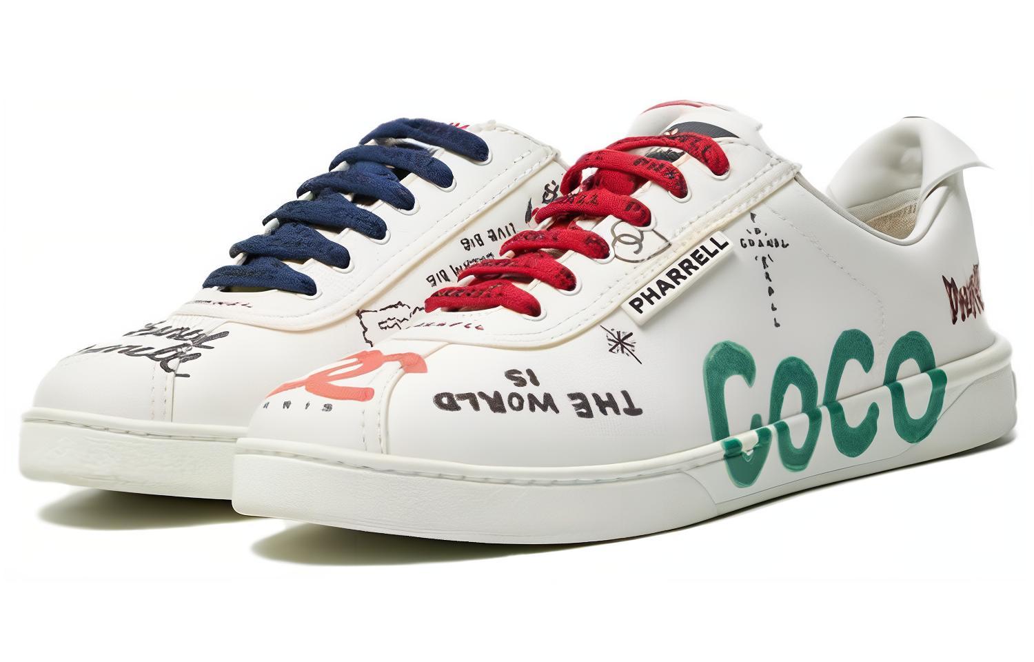 Pharrell x CHANEL Logos Stylish Skateboarding Shoes Women's White