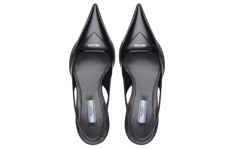PRADA 30mm Sling Back Pumps Black Brushed Leather