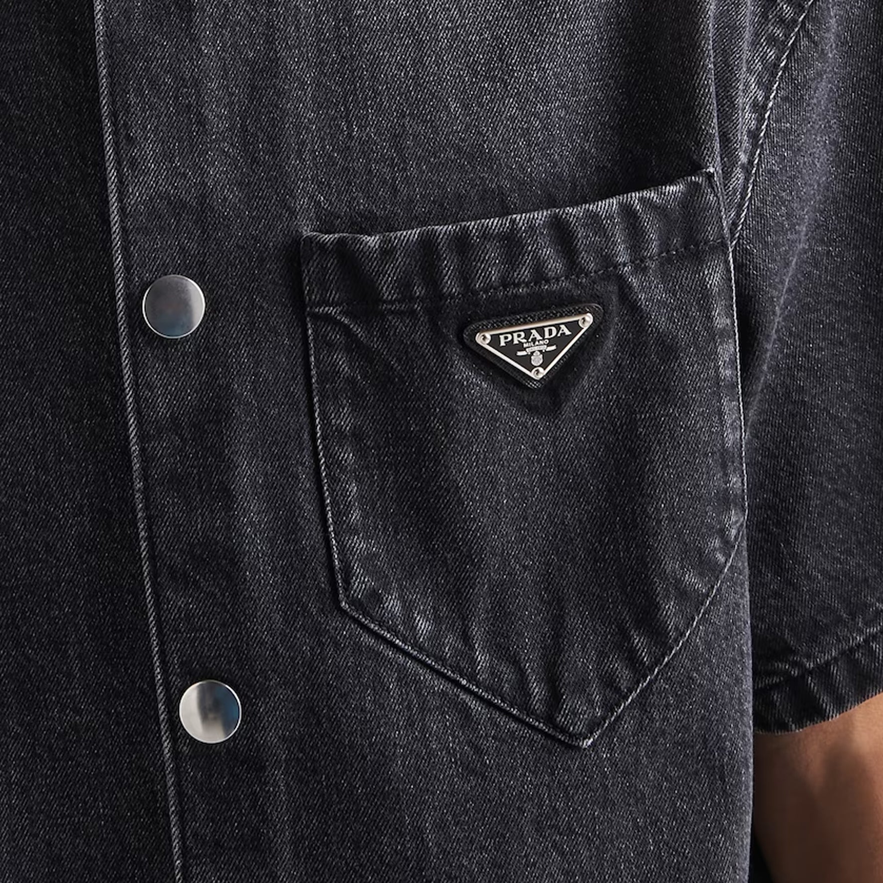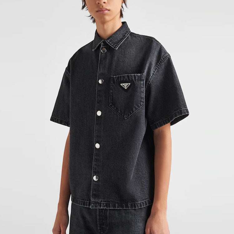 PRADA Logo Plaque Short Sleeved Denim Shirt