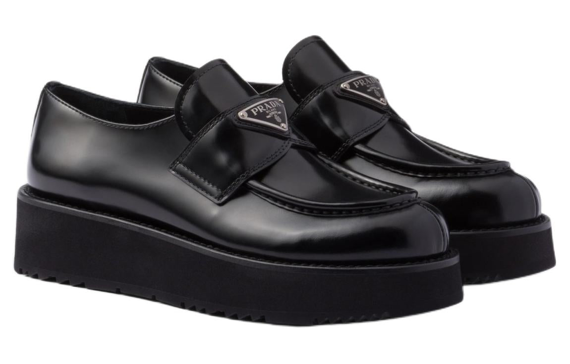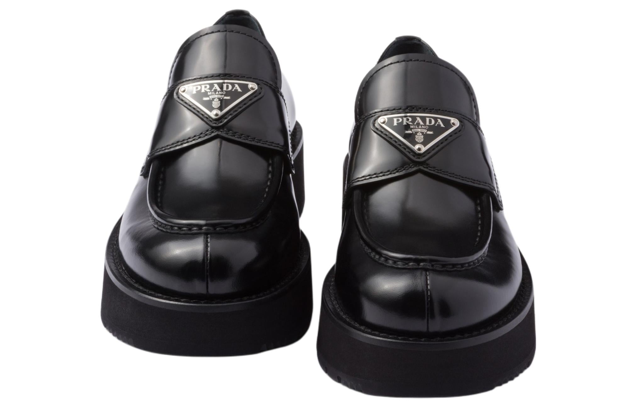 PRADA Triangle-logo Leather Loafers